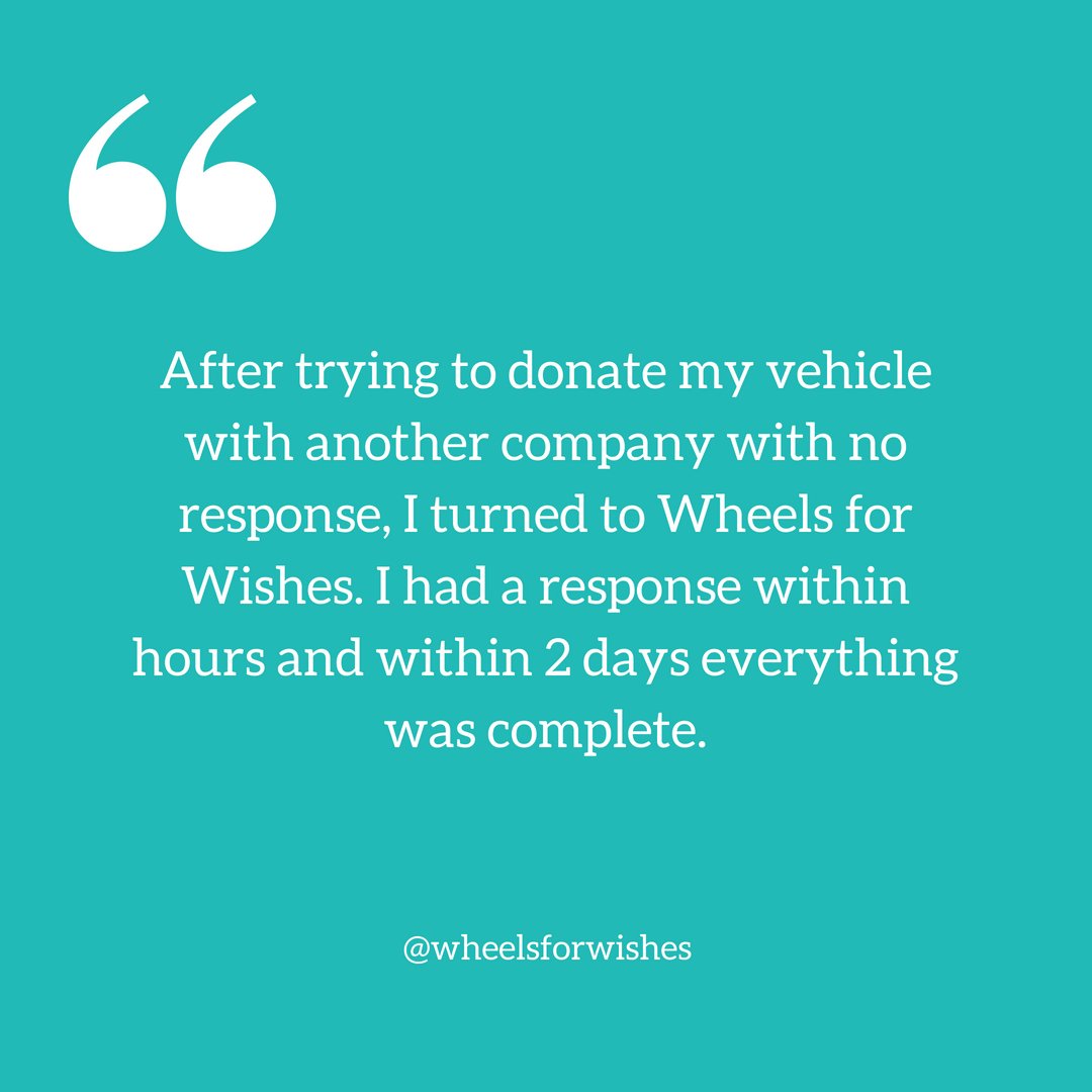 Download Wheels For Wishes Reviews Pics. 100 reviews | 5.0 rating. One thing you'll notice when reading the thousands of positive wheels for wishes charity ratings and reviews on trustpilot is that our generous donors really appreciate our convenient donation process.